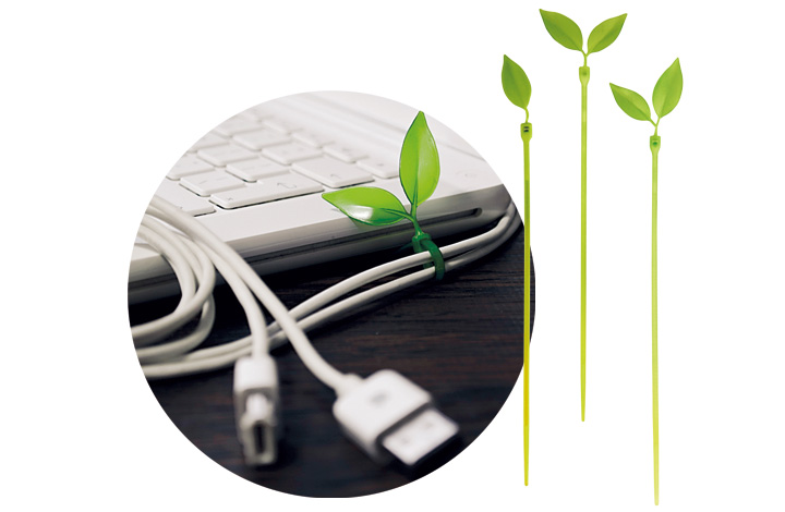 PCの充電ケーブルが長すぎて、机の上でグチャってません? そんなときは、この結束バンドを。スッキリまとめられるだけでなく、余ったケーブルから新芽が出ているかのように見えて、プチほっこり気分にも(笑)。12本入り。1000円。