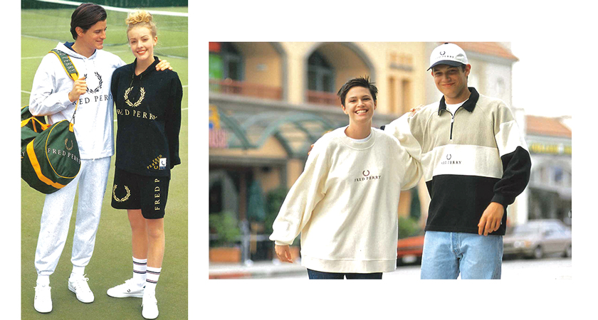 若い世代を中心にデカロゴデザインが脚光を浴びる中、フレッドペリーでもデカロゴウエアが人気とのこと。こちらは’90年代のカタログに掲載されていたトラックジャケットをデザインベースに、大きな刺繍ロゴがフロントに入れられています。