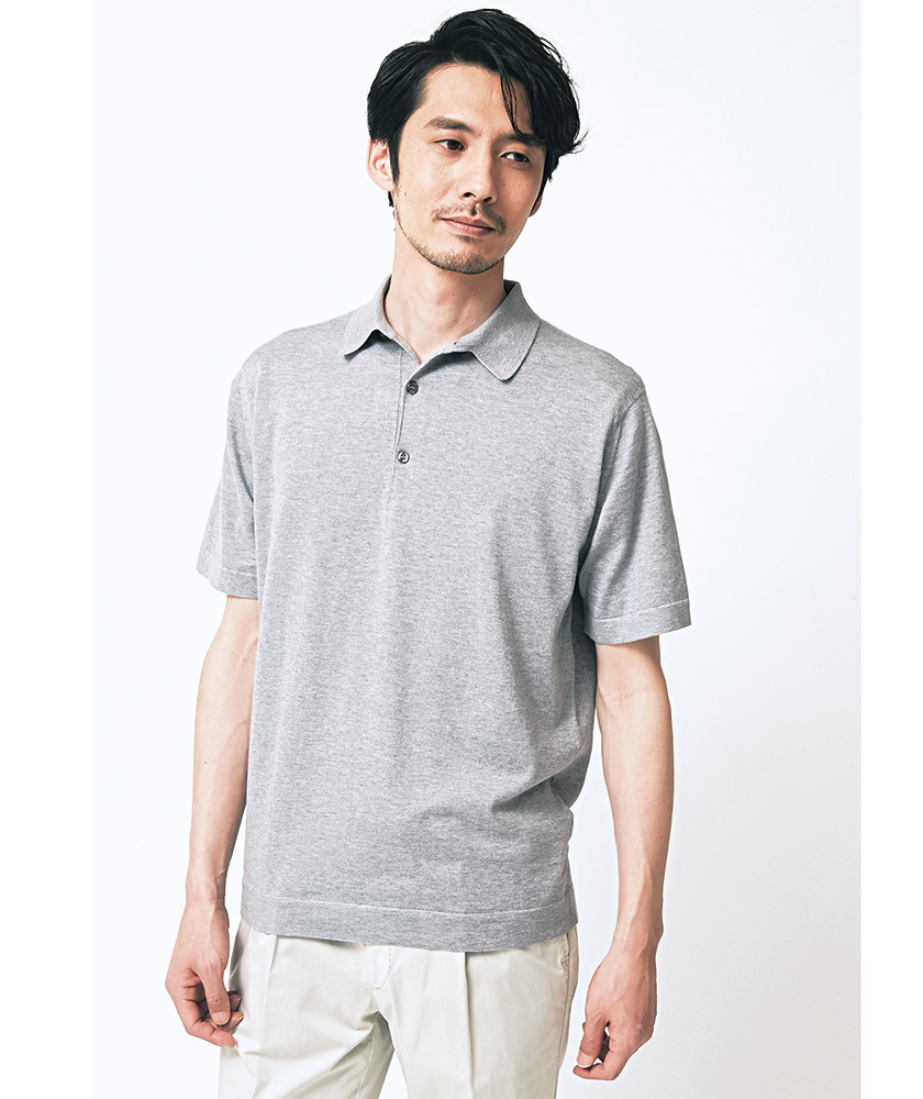 カットソー感覚で着こなせる。ジョン スメドレーのポロシャツ上記参照。ロータのパンツ3万9000円(エリオポールメンズ銀座)