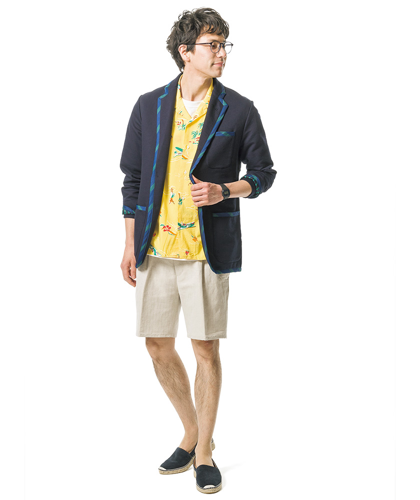 個性の強いアロハシャツは、チラ見せするだけで抜け感バッチリ。ショーツやエスパドリーユでリゾート感を強調するとまとまりが。