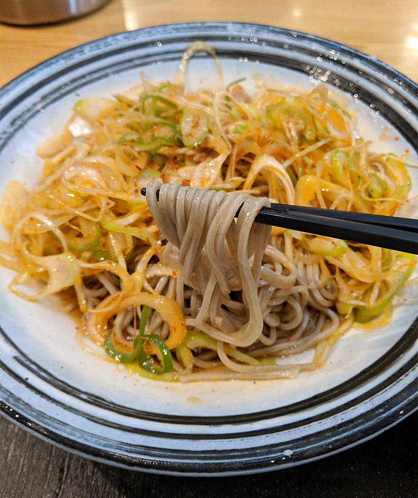辛すぎないピリ辛ネギが絶妙にウマい。本家しぶそばの「冷やしピリ辛ねぎそば」【SOBA Su Su Ryu】