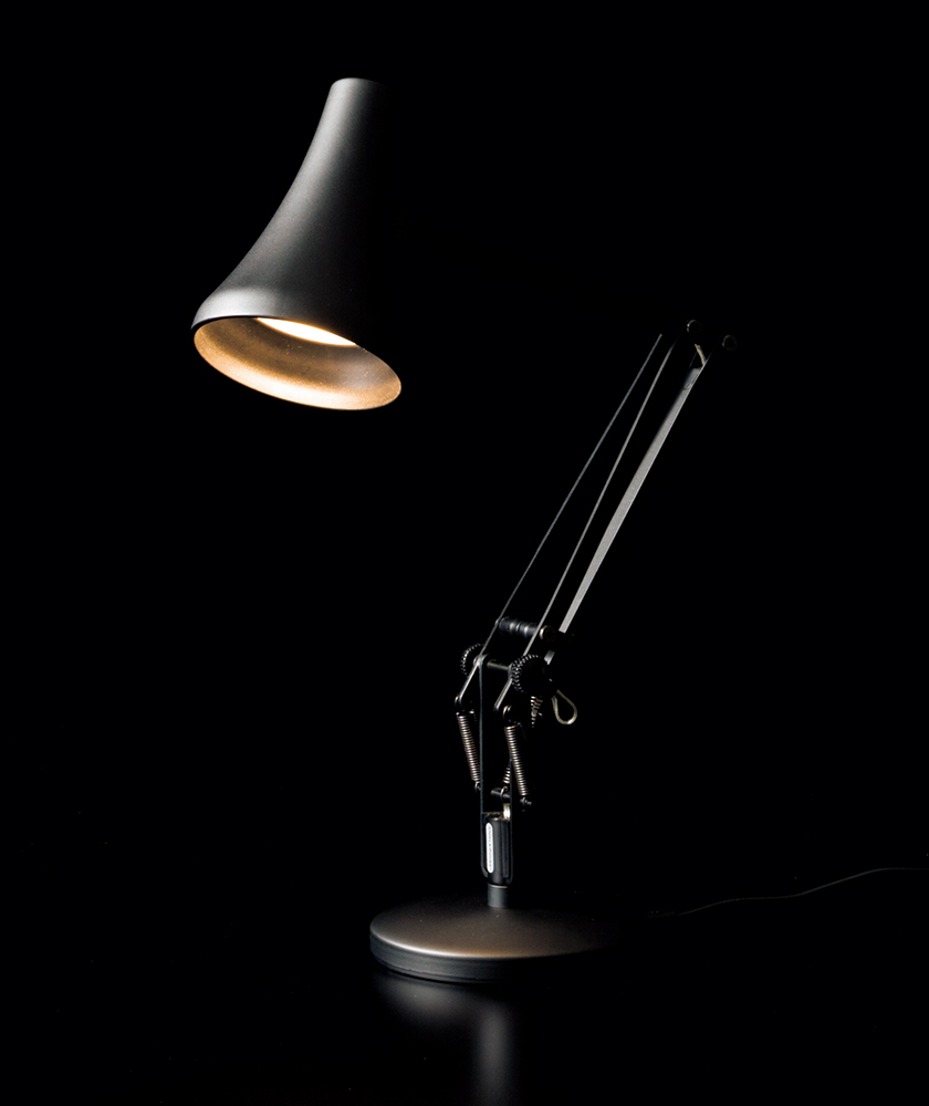 自転車のサスペンション会社を前身とする英国の名門が開発した名作ランプ“Model90”のハーフサイズ版。角度や高さ自在のシェードやフレーム等、お馴染みのメカニズムは踏襲。スタンダードにアームを曲げた際の高さは約30cm。1万8000円。(リンインクープ)