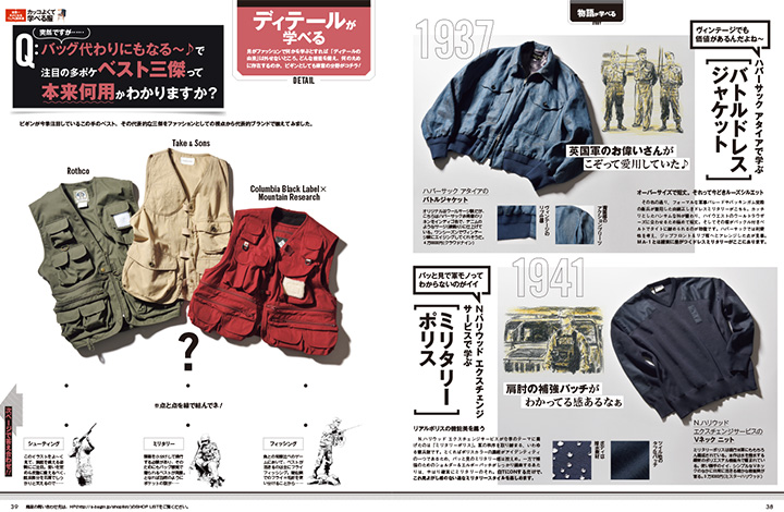 男がファッションで何かを学ぶとすれば「ディテールの由来」は外せないところ。どんな機能を備え、何のために存在するのか。ビギンとしても得意の分野がコチラ!