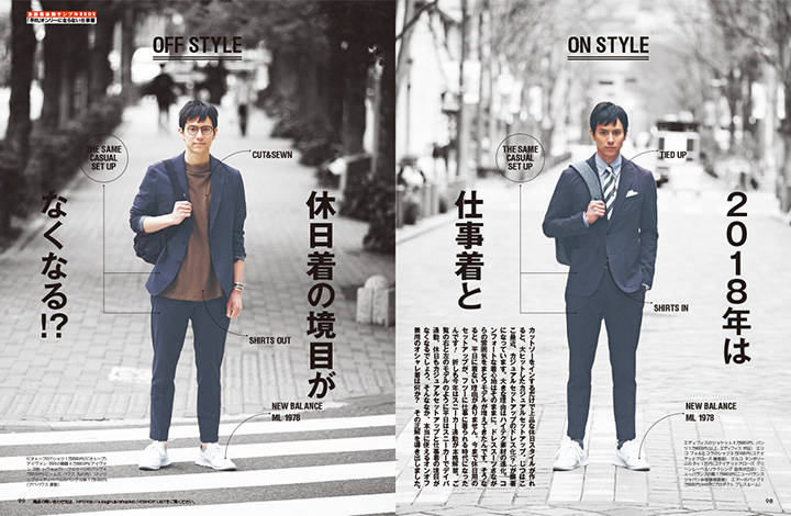 カットソーをインするだけで上品な休日スタイルが作れると、大ヒットしたカジュアルセットアップ。じつはここ最近、カジュアルセットアップのドレス化(?)が顕著になっています。大きな理由はハイテク素材の進化。コンフォートな着心地はそのままに、ドレススーツさながらの雰囲気をまとうモデルが増えてきたんです。そうなると、平日に着ない理由がありません。今まで休日用のセットアップが、フツーに仕事に着られる時代になったんです! 折しも今年はスニーカー通勤が本格解禁。ご覧の右と左のモデルのように平日はスニーカーでデイパ通勤、休日もカジュアルセットアップと仕事着の境目がなくなるでしょう。そんななか、本当に使えるオンオフ兼用のオシャレ着は何か? その正解を導き出しました。